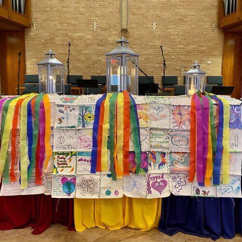 Because maybe seeing the frayed pieces of our prayers and fears sewn together and draped on the altar will symbolize a little bit of healing.