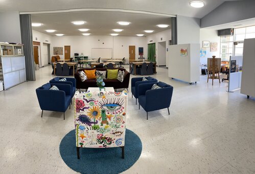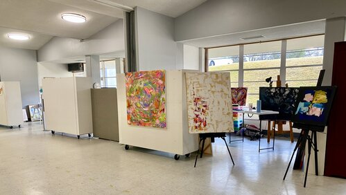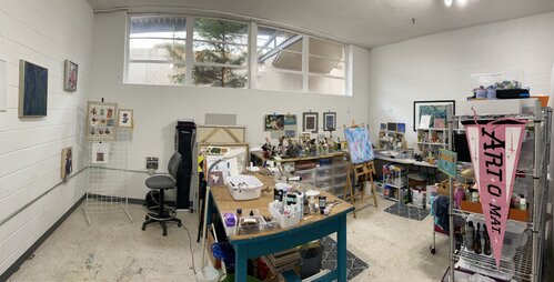 Studio space designed for visual artists that encourages creativity. Plenty of room to spread out and work on projects in spaces filled with abundant natural light.